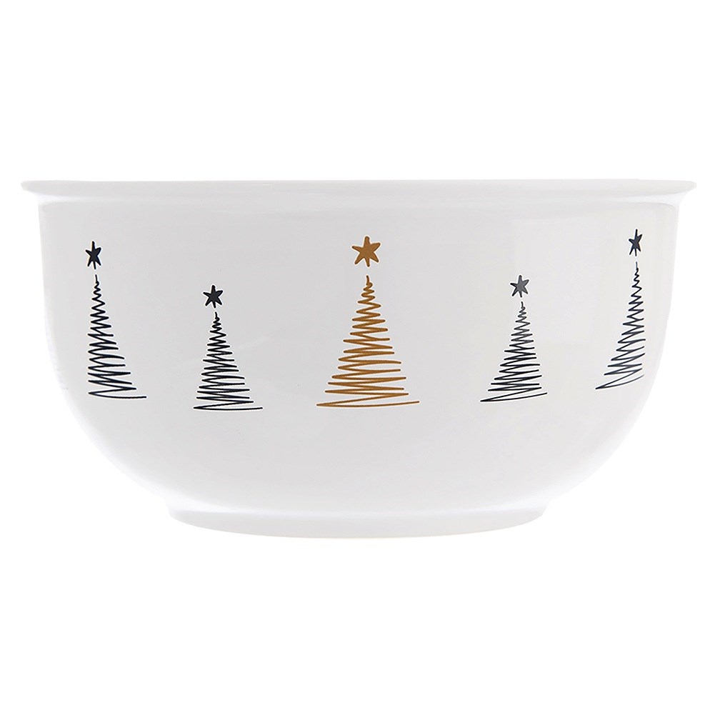 Schüssel mit einem Fassungsvermögen von 560 ml. Es besteht aus weißem Porzellan mit einem Weihnachtsmotiv. Perfekt zum Servieren von Suppen oder Snacks. Geeignet für Spülmaschine und Mikrowelle.