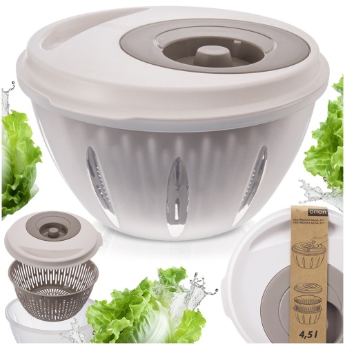 Ein praktischer Salattrockner ist ein Werkzeug, das in jedem Haus nützlich ist. Erleichtert die Zubereitung frischer Salate und anderer Gerichte mit Laubgemüse. Es eignet sich auch zum Trocknen von Gemüse, Obst oder Kräutern. Der Wirbel reduziert die Trocknungszeit von Salat im Vergleich zum traditionellen Trocknen eines Papiertuchs erheblich. Dank des Knopfes in der Abdeckung ist es schnell und effektiv, überschüssiges Wasser aus Salat zu entfernen.Originalprodukt der tschechischen Marke ORION.Nach europäischen Standards hergestellt.
