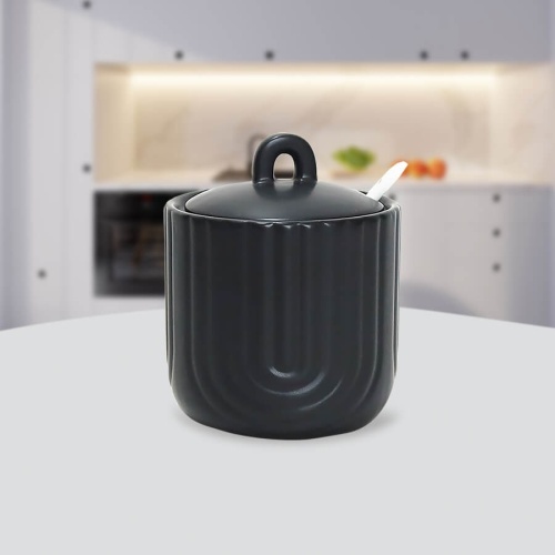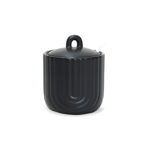 Zuckerdose aus Keramik mit Löffel, Zuckerdose, Zuckerbehälter, Line Work MAESTRO MR-20006-09