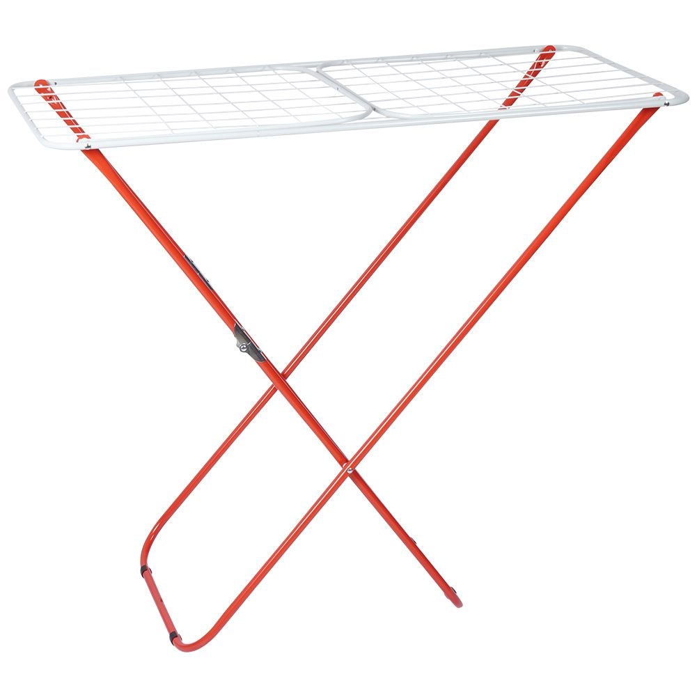 Stabiler, faltbarer Wäschetrockner. Hergestellt aus langlebigem und massivem Metall. Einfacher Klapp- und Aufklappmechanismus. Es kann drinnen und draußen verwendet werden.