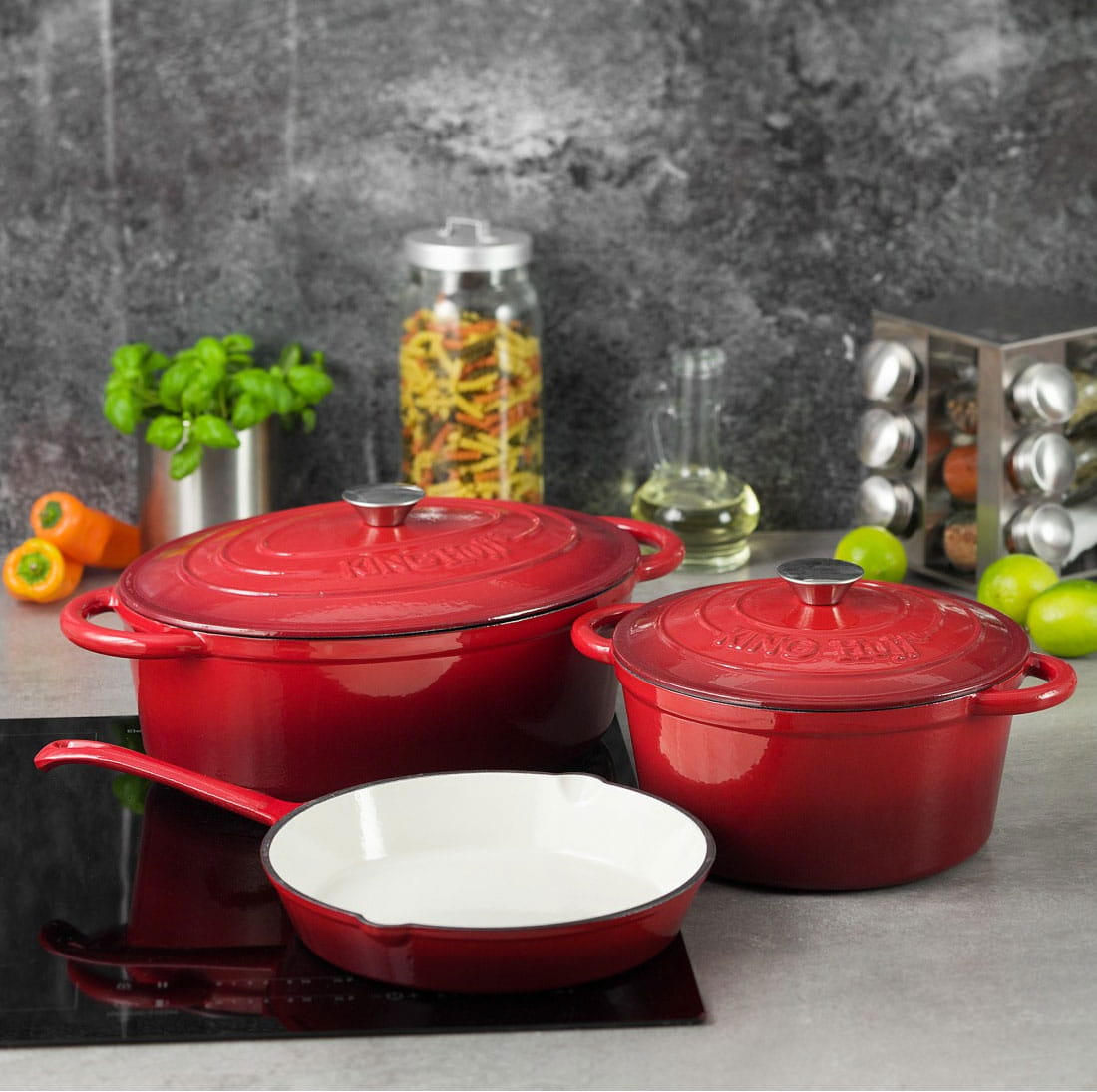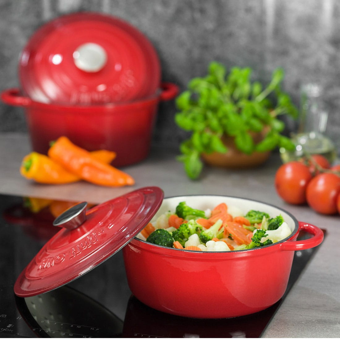 Can be used in the oven and on the fire. Suitable for all types of cookers: gas, electric, halogen and induction.