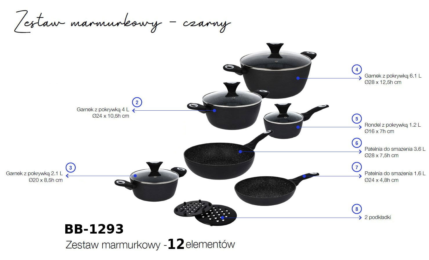 12 pcs Cookware Set with non-stick Granite coating BRUNBESTE BB-1293