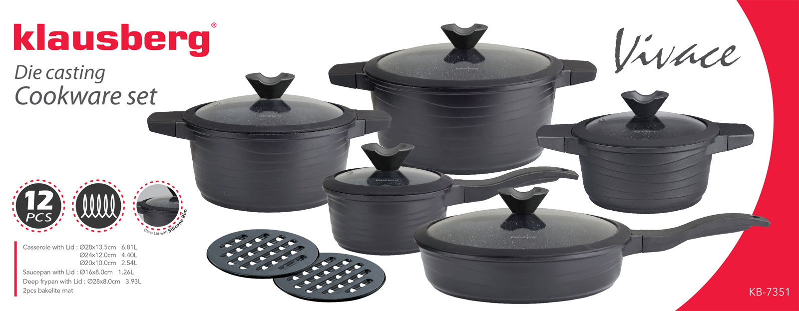 12 piece High Quality Granite Cookware Set KLAUSBERG VIVACE KB-7351