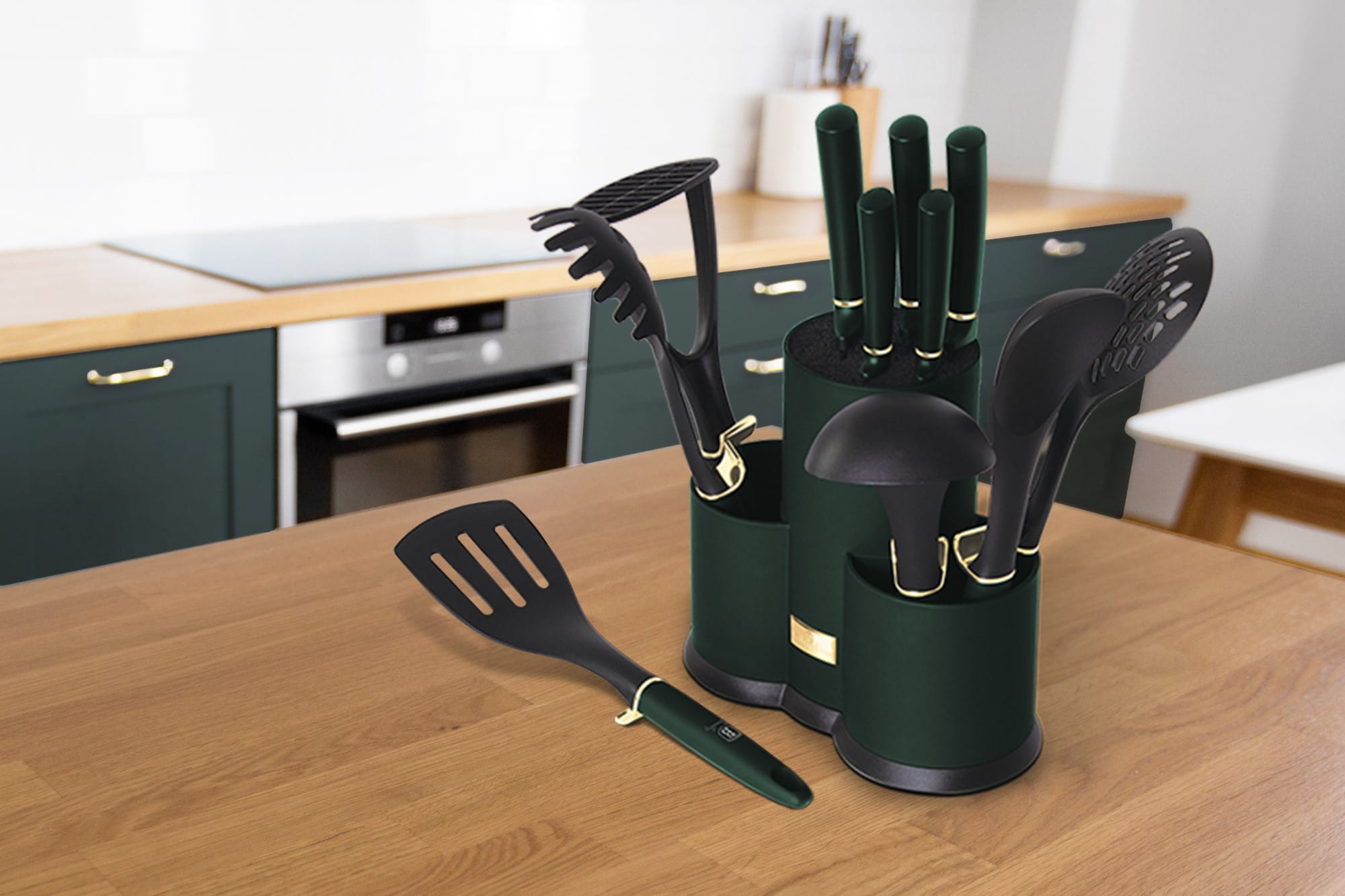 Set of knives and kitchen utensils 12 items by BERLINGER HAUS from the EMERALD series.
