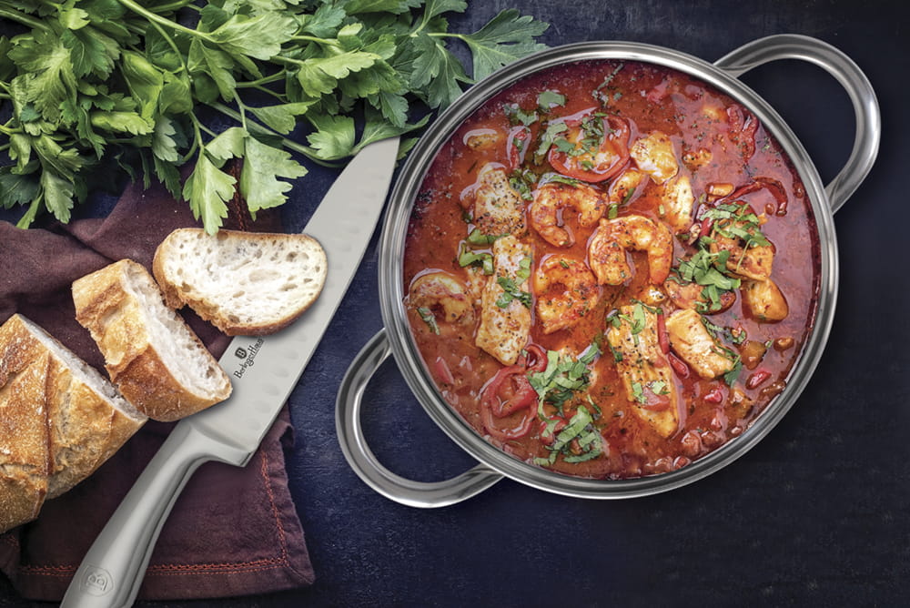 A set of pots (12 pcs) by BERLINGER HAUS from the SILVER JEWELLERY line with an acutermic multilayer bottom made of top-quality chrome-nickel steel. The chrome-nickel steel used to make the set is stainless, durable and long-lasting. The material used looks great and is extremely easy to clean and has anti-bacterial properties. The multi-layered accuthermal bottom (5mm) guarantees excellent heat distribution and storage. Due to their unique features, the pots are also suitable for cooking with minimal water and fat. The pots can be used on all types of cooker, including induction cookers. The riveted handles guarantee long-lasting and safe use. The measuring scale inside each pot makes it easy to dispense the required amount of water or other ingredients for the dish being prepared.