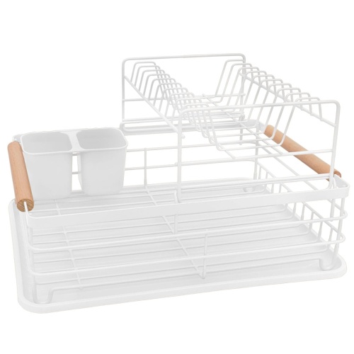 KINGHOFF 2-level dish drainer. Includes a plastic 2-chambered cutlery drainer. The dryer features a clever design that allows a large number of dishes to be dried at the same time. Powder-coated metal frame in black. The dryer fits into any kitchen.