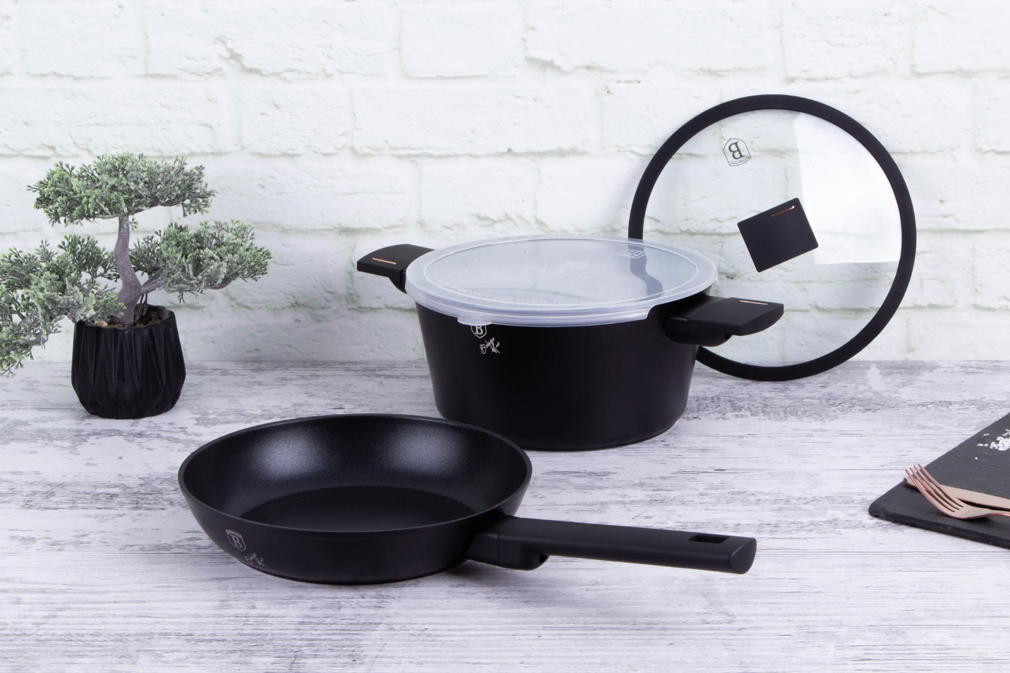 The set comes with a BERLINGER HAUS plastic lid, along with it you don't need additional food storage containers, just put these lids on your Berlinger Haus brand pans or pots and your cookware becomes a convenient food container.