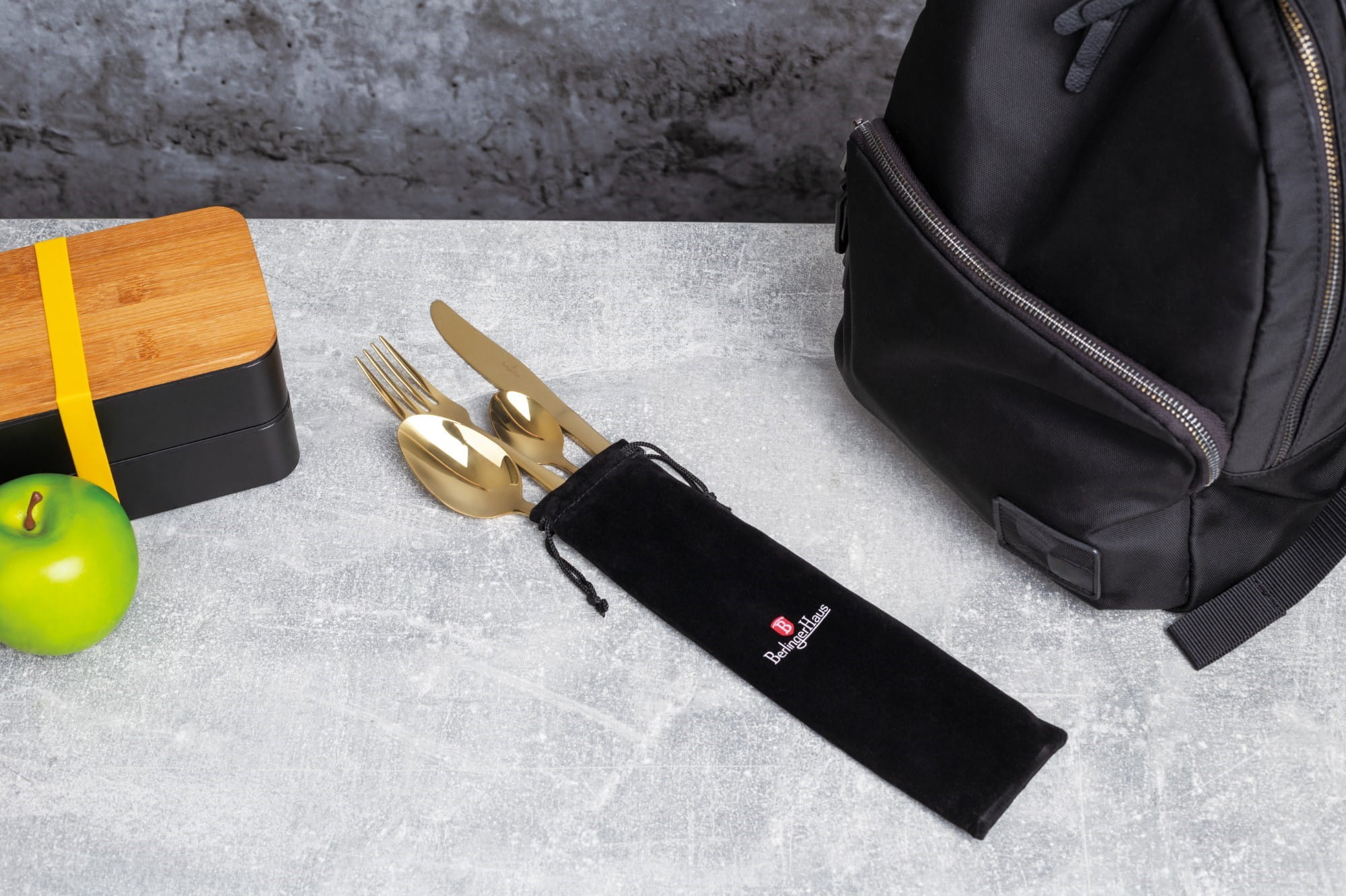 Put the cutlery in the special canvas case and take it with you to the office, restaurant, on a trip, on a picnic. They will fit in your bag or pocket. Available in a fashionable, modern and elegant gold colour. It has a mirror effect while being made of high-quality stainless steel.