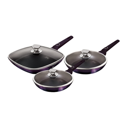 Set of 3 pans with non-stick titanium coating by BERLINGER HAUS from the PURPLE ECLIPSE series