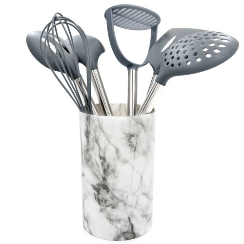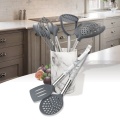 7-part set of kitchen utensils made of resistant plastic and steel.