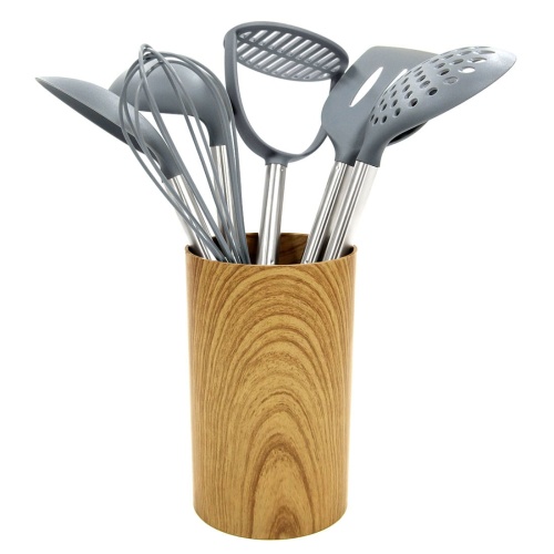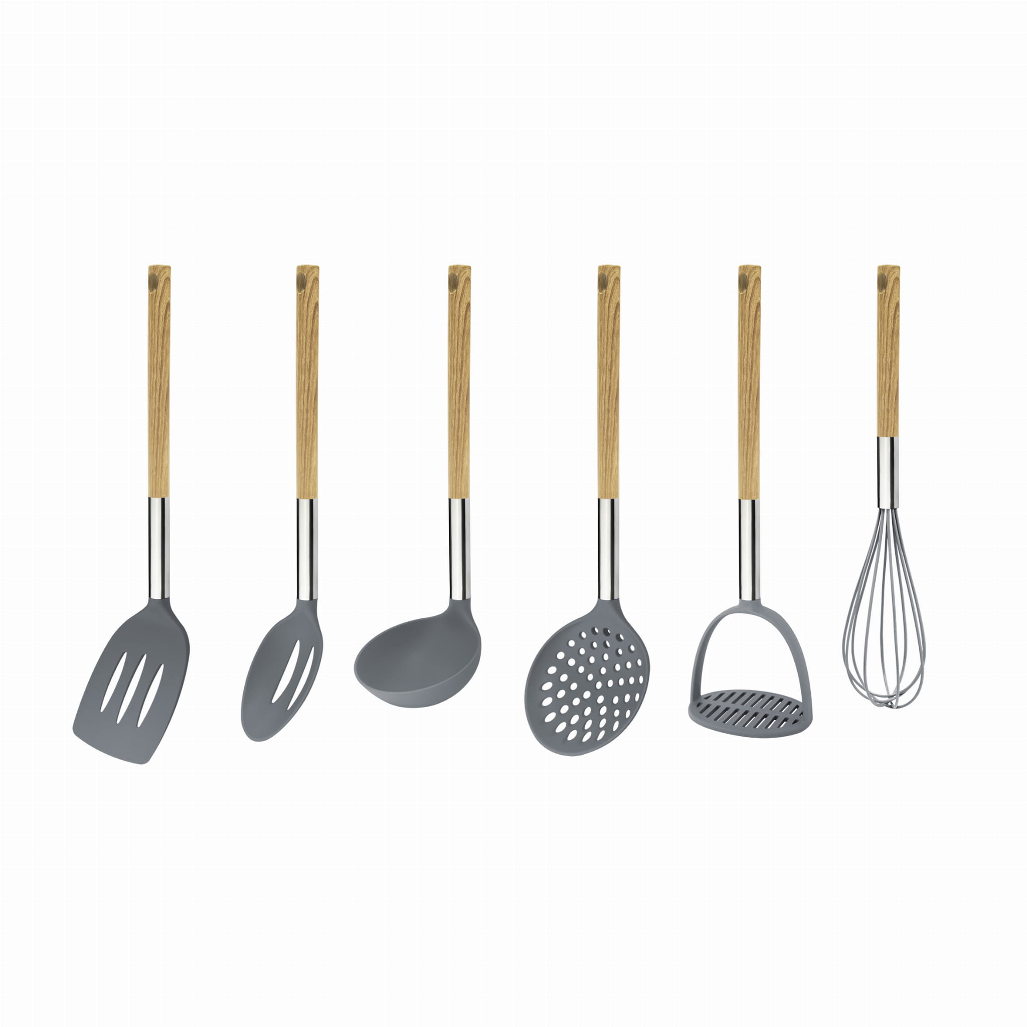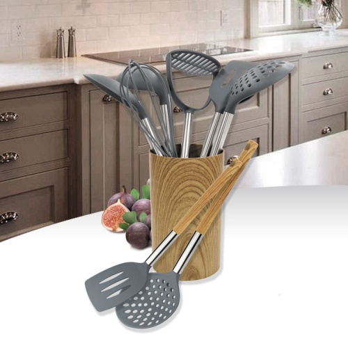 7-part set of kitchen utensils made of resistant plastic and steel.