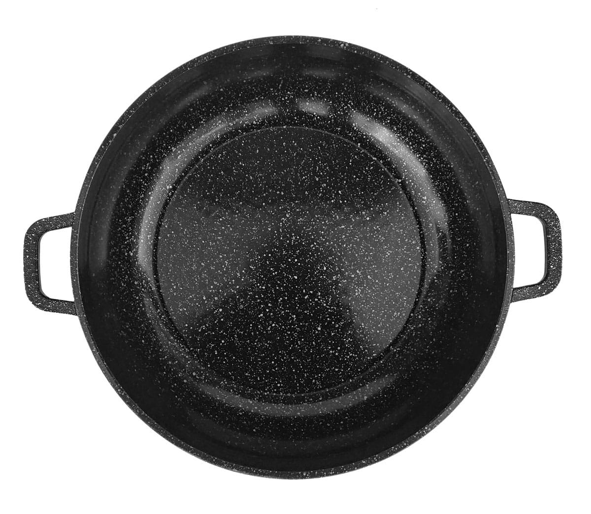 Granite / marble coating makes the dishes extremely resistant to scratches and durable. This type of pots and pans also allows frying with minimal fat, as the pot warms up similarly to stone and gives off heat with its entire surface.
