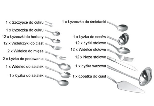 KOMPLET SZTUĆCÓW KINGHOFF 72 CZĘŚCIOWY (BŁYSZCZĄCE SREBRNE) WZÓR 3508.
