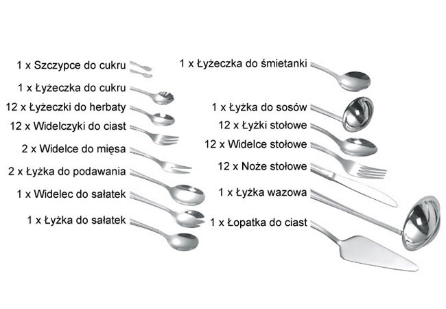 Eleganckie sztućce wysokiej klasy wykonane ze stali szlachetnej chromowo-niklowej 18/10. Opakowane w walizkę aluminiową obleczoną skórą ekologiczną. Wysoka jakość wykonania gwarantuje długoletnie użytkowanie.