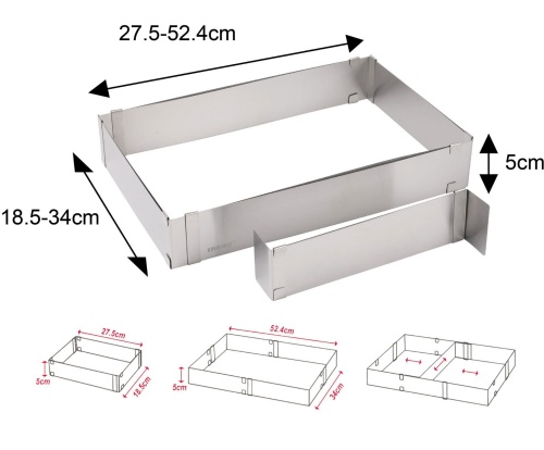 Adjustable cake tin 34-52 x 27-18.5 x 5cm, Cake pan, Confectionery rim KINGHOFF KH-1907