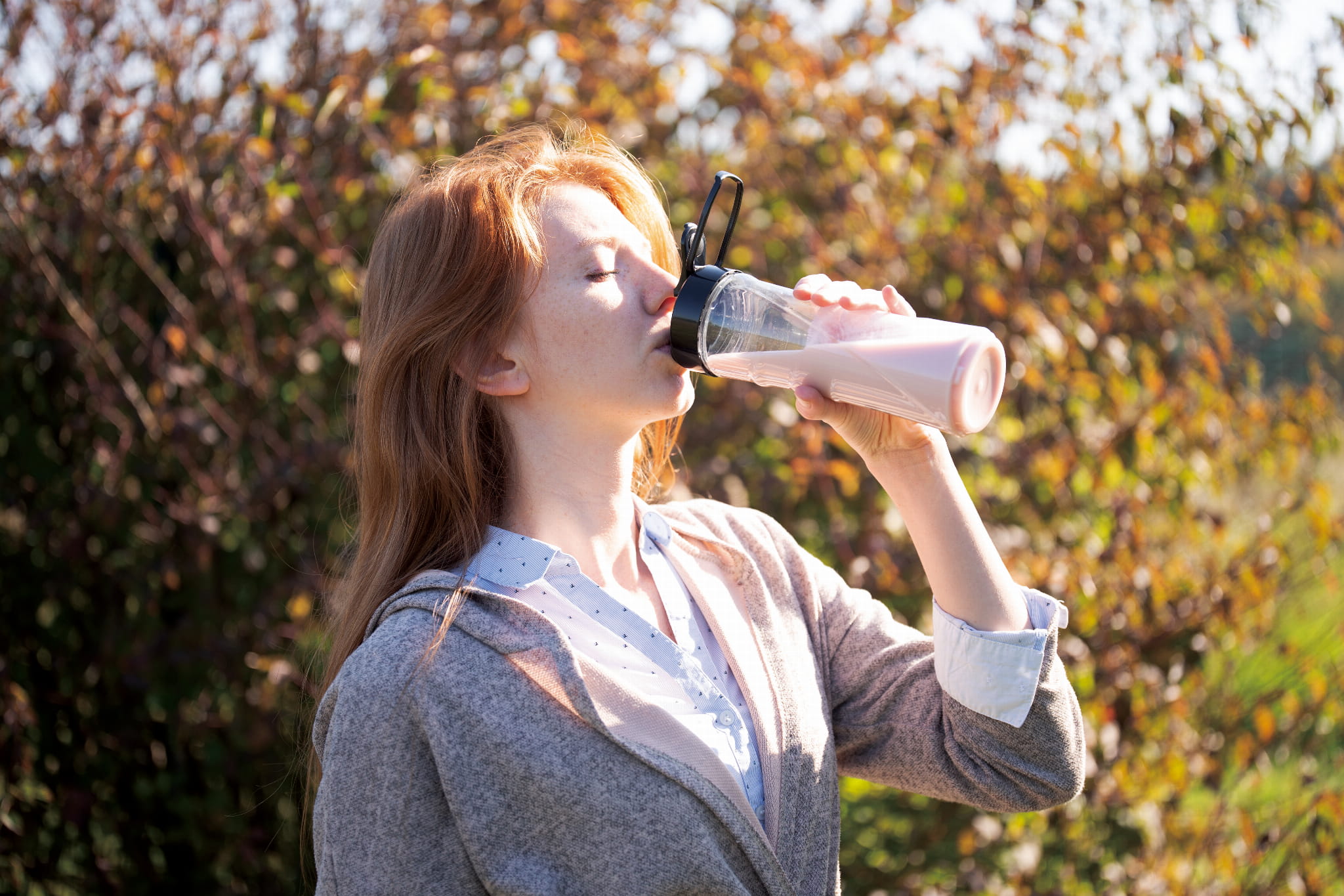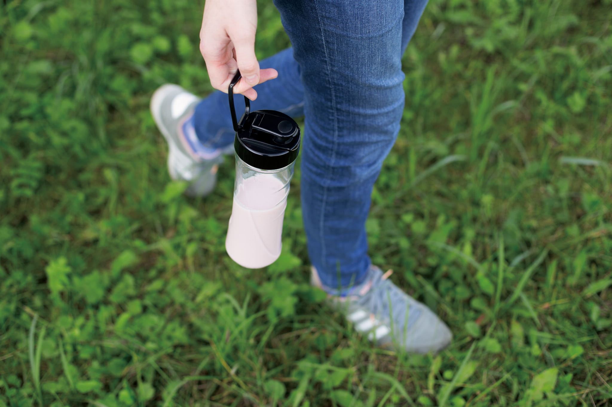 Plastikowy kielich do miksowania produktów spożywczych o pojemności 500ml może służyć jako bidon, w którym ulubiony napój możemy zabrać ze sobą do pracy, szkoły lub na trening.