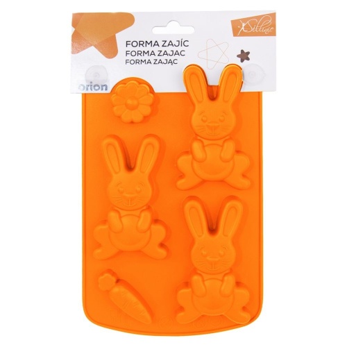 A silicone mold that allows you to prepare 5 pralines. Ideally suited to the Easter, because we will create sweets in the shape of an Easter hare. We can prepare pralines, chocolates as well as cakes. The mold does not absorb smells and flavors. The dough does not stick, it is perfectly pulled out. No fat or flour is used for baking. The silicone form is light, flexible, takes up little space and is resistant to temperature changes. It conducts heat very well.Original product of the Czech brand ORION.Manufactured in accordance with European standards.