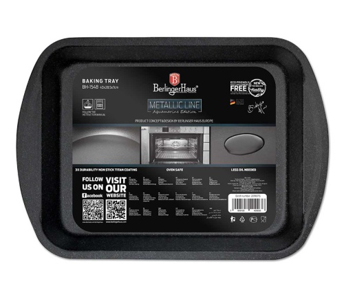 Use: for baking cookies, biscotti or other delicious dishes such as homemade fries and taquitos. This robust baking tray has a robust design that reliably resists warping and heats up evenly, ensuring even baking. It is a perfect complement to many other elements of the Berlinger Haus Metallic Line collection.
