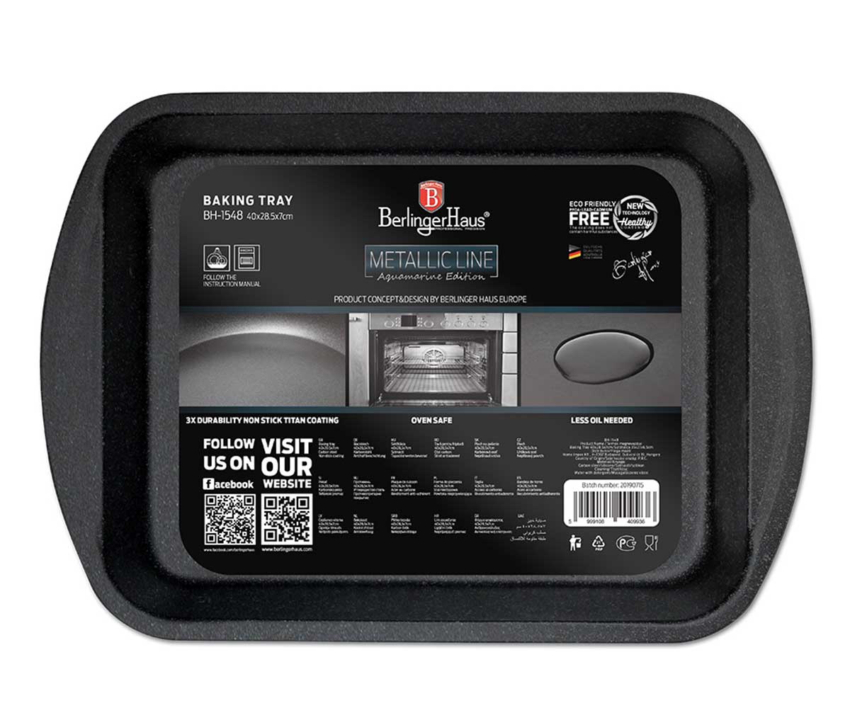 40 x 28.5 x 7 cm baking tray / baking tray with non-stick titanium coated BERLINGER HAUS from the METALLIC LINE series - Aquamarine Line