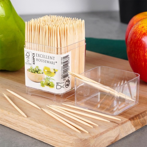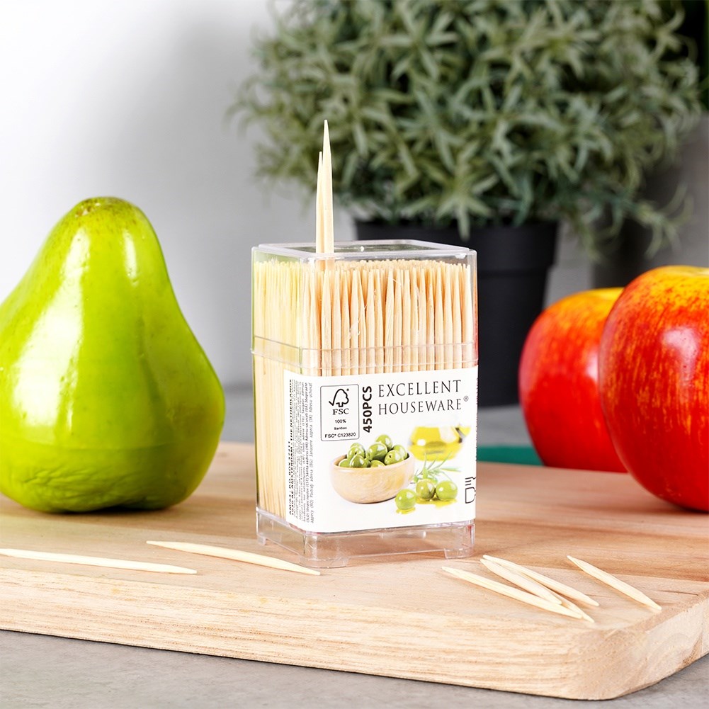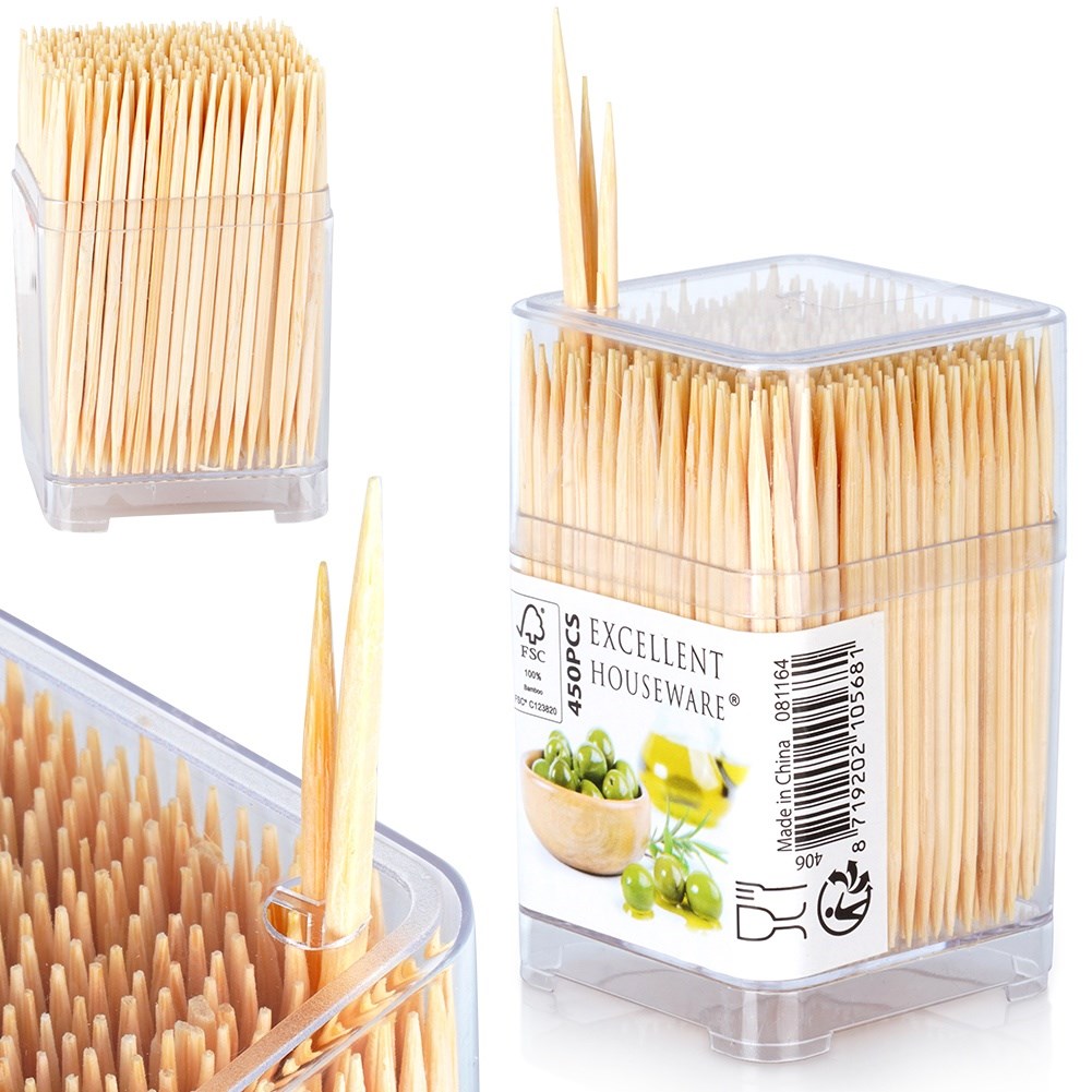 - PRACTICAL- Set of 450 pieces of wooden cocktail toothpicks. Toothpicks packed in a convenient plastic box. The length of each toothpick is 6 cm.