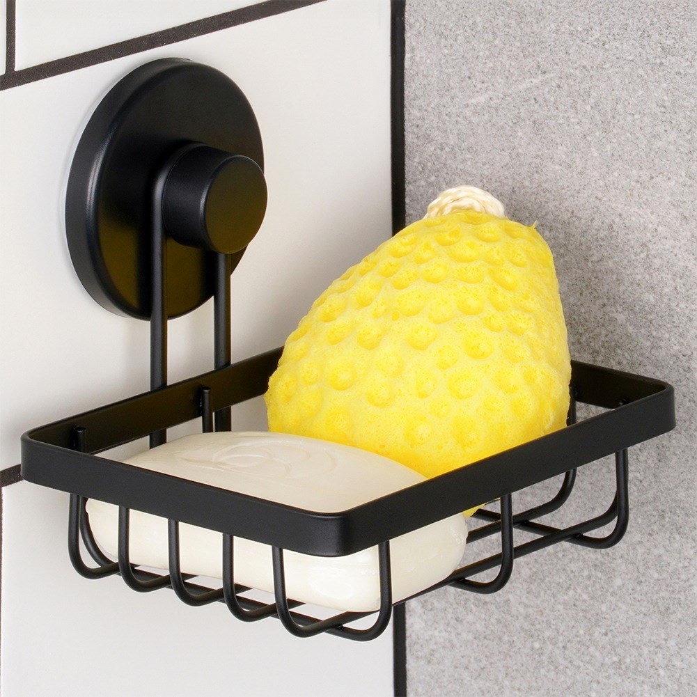 Black metal shower shelf with suction cup 13.5x10.5x11.5 cm BATHROOM SOLUTIONS