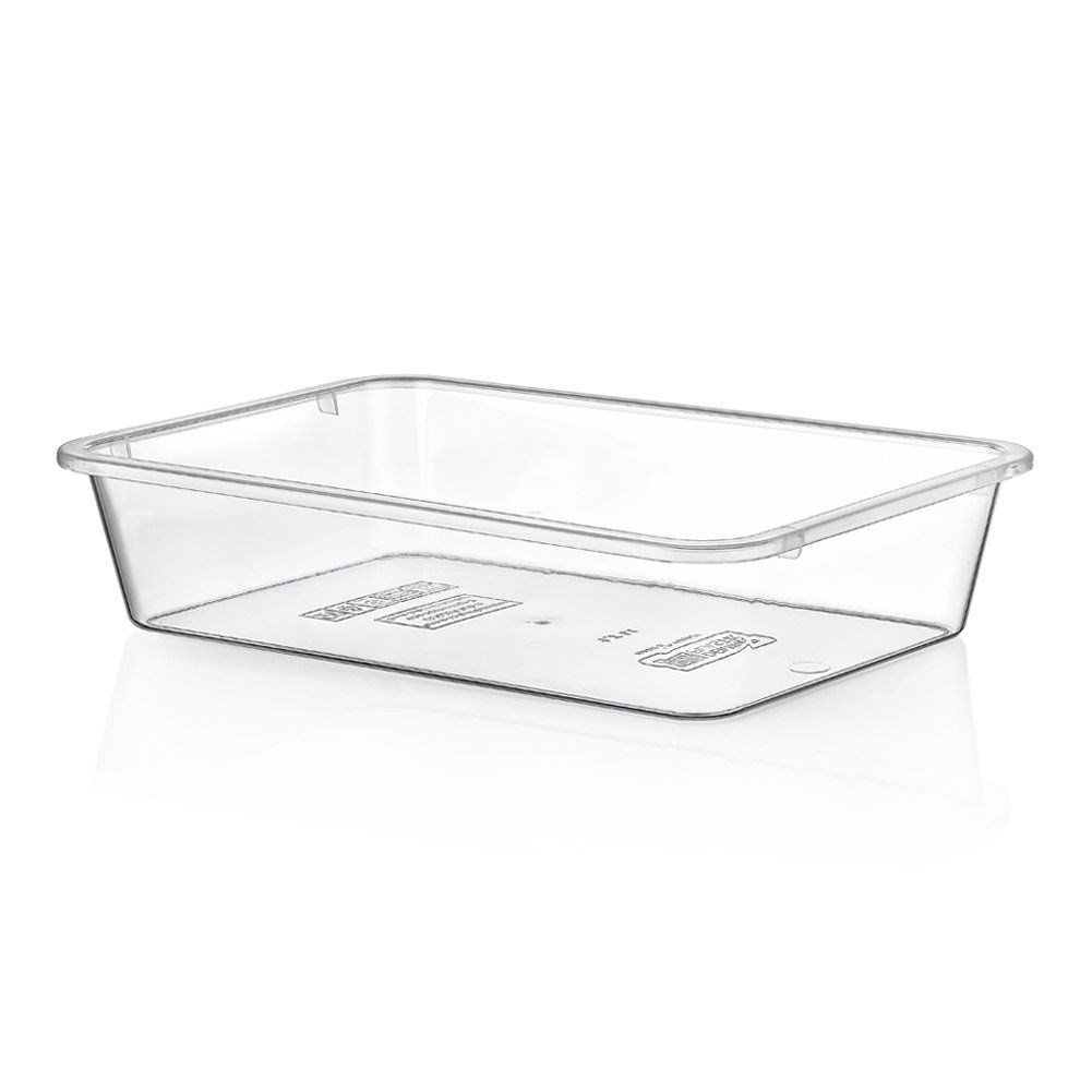 A rectangular kitchen container dedicated to storing food products. Particularly useful in the fridge as an organizer.