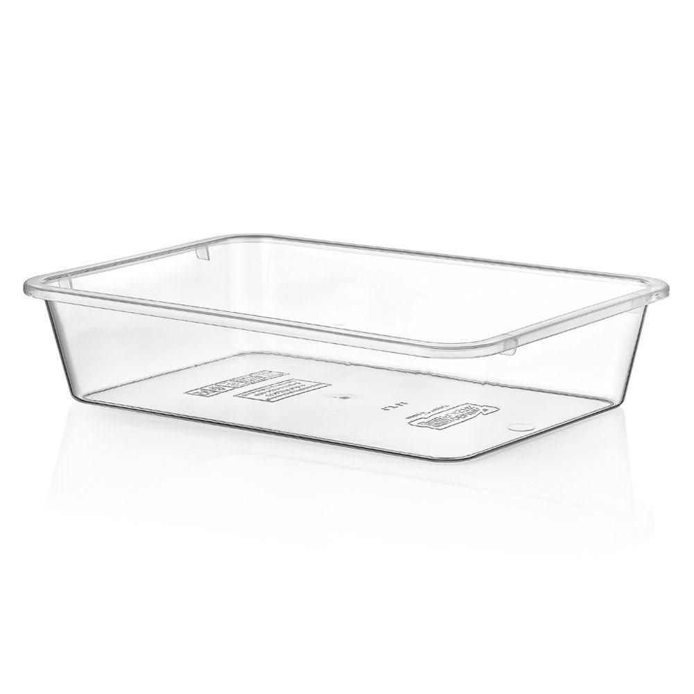 Kitchen container for storing food products. Perfect as an organizer for the fridge, especially for storing fruit and vegetables. Thanks to the transparent form, you can easily see the contents of the container. It is easy to clean and resistant to low and high temperatures. The container does not have a lid. Useful in every home. Manufactured in accordance with European standards.