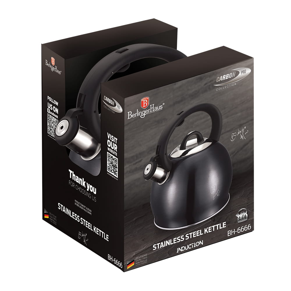 Klasyczny czajnik 3.0L BERLINGER HAUS z gwizdkiem z serii naczyń CARBON PRO.