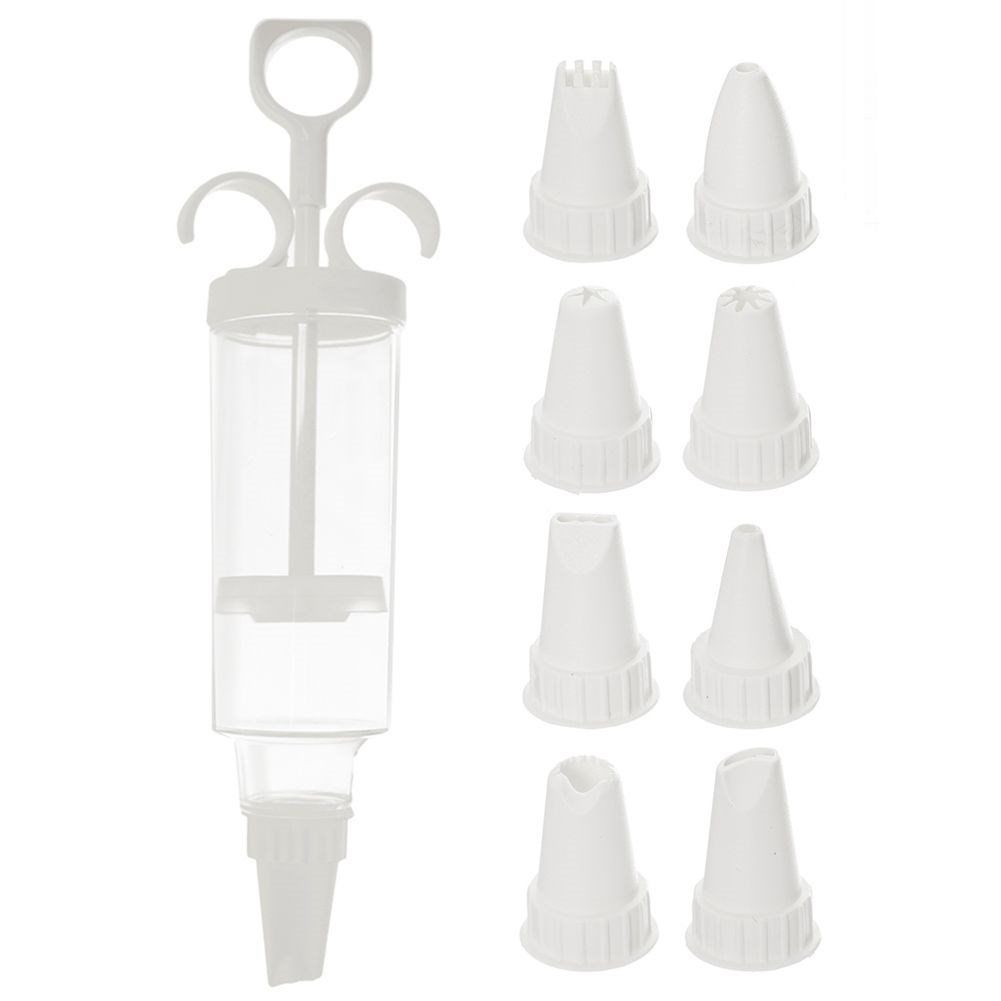 Decorator in the form of a syringe with nine replaceable tips. Perfect for stuffing and decorating desserts, cakes, cakes, cupcakes and other pastries.