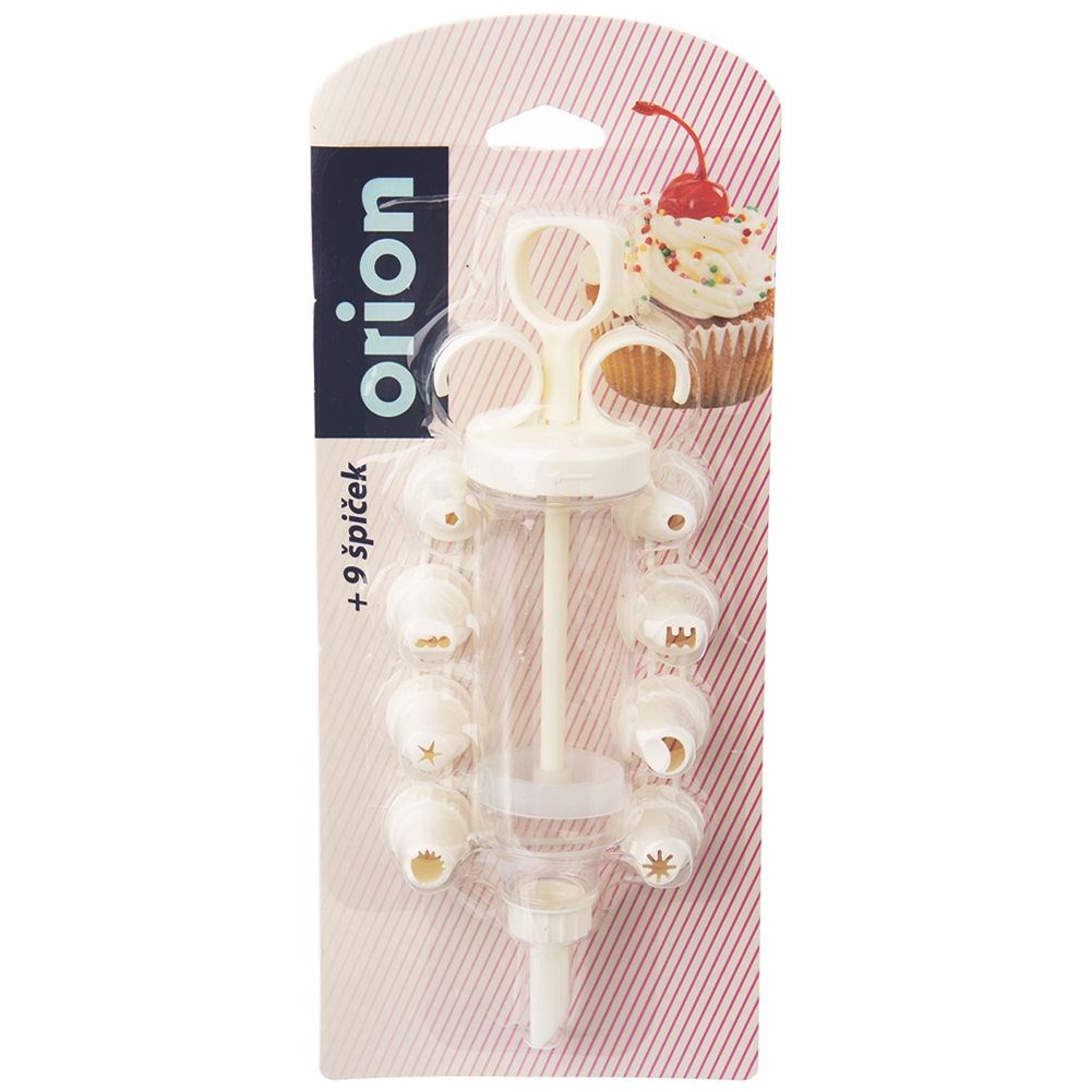 Cake decorator with tips. Solidly made, convenient to use. Using it is very easy, just fill it with cream or cream. Thanks to precision, we can easily create effective inscriptions or decorations. Ideal for decorating muffins, cakes, tartlets and other sweet pastries. It is not recommended to wash in a dishwasher for proper maintenance.Original product of the Czech brand ORION.Manufactured in accordance with European standards.