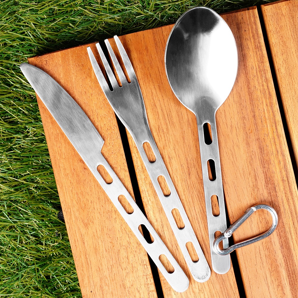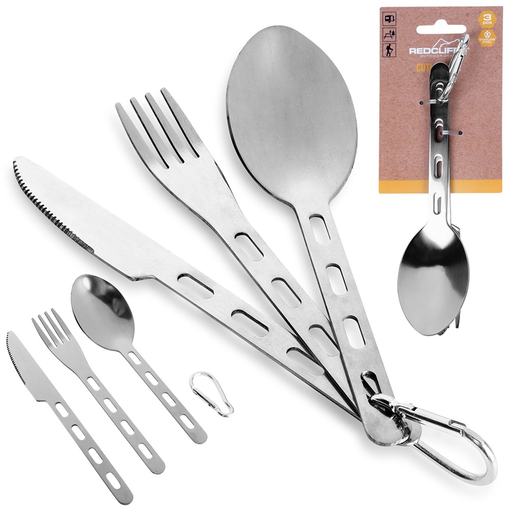 Camping steel camping cutlery with a carabiner, 3 pieces REDCLIFFS 139807