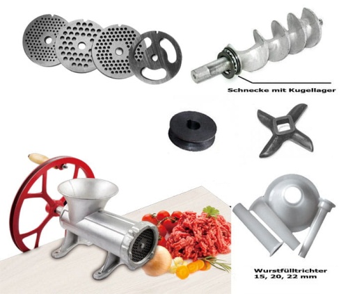 The machine is robust, functional and easy to clean. It is made entirely of cast iron, which ensures high durability and strength. The machine is designed for electric motor! It has a bearing on the worm. It can be driven in two ways by two drive wheels - large for the machine with an external diameter of Ø30cm or small pulley for a Ø6cm motor.
