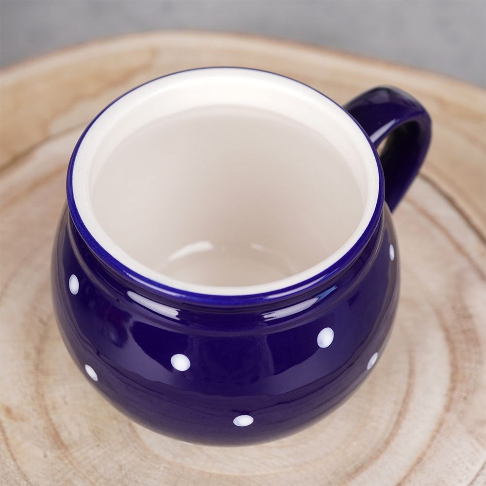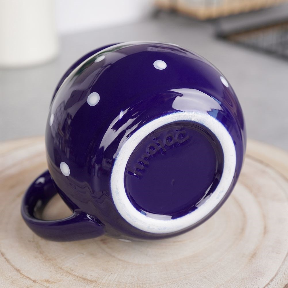 - RELIABLE- made of high quality ceramics in navy blue with a decor in the form of white dots. Properly used will serve for many years.