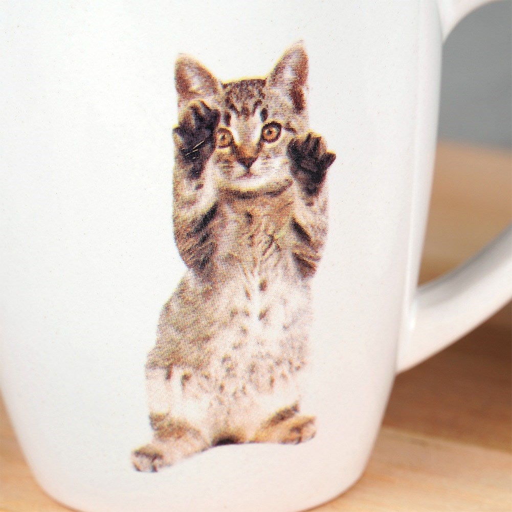 - Made of ceramics- cups made of the highest quality white ceramics, decorated with graphics depicting charming cats. Properly used, they will serve for many years.