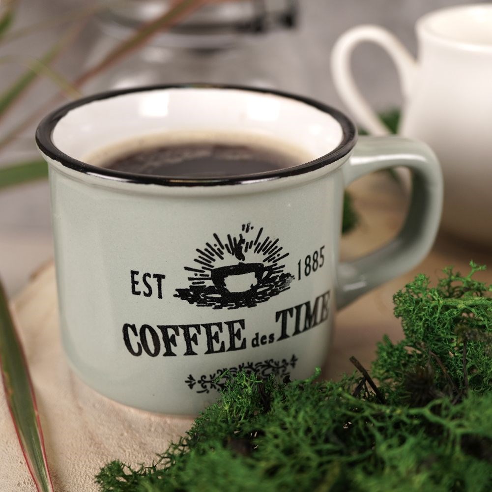 - Ceramic- cups made of high quality ceramics. The sets are available in two colors (we send randomly without choosing the color). They have an interesting, black decor with coffee motifs.