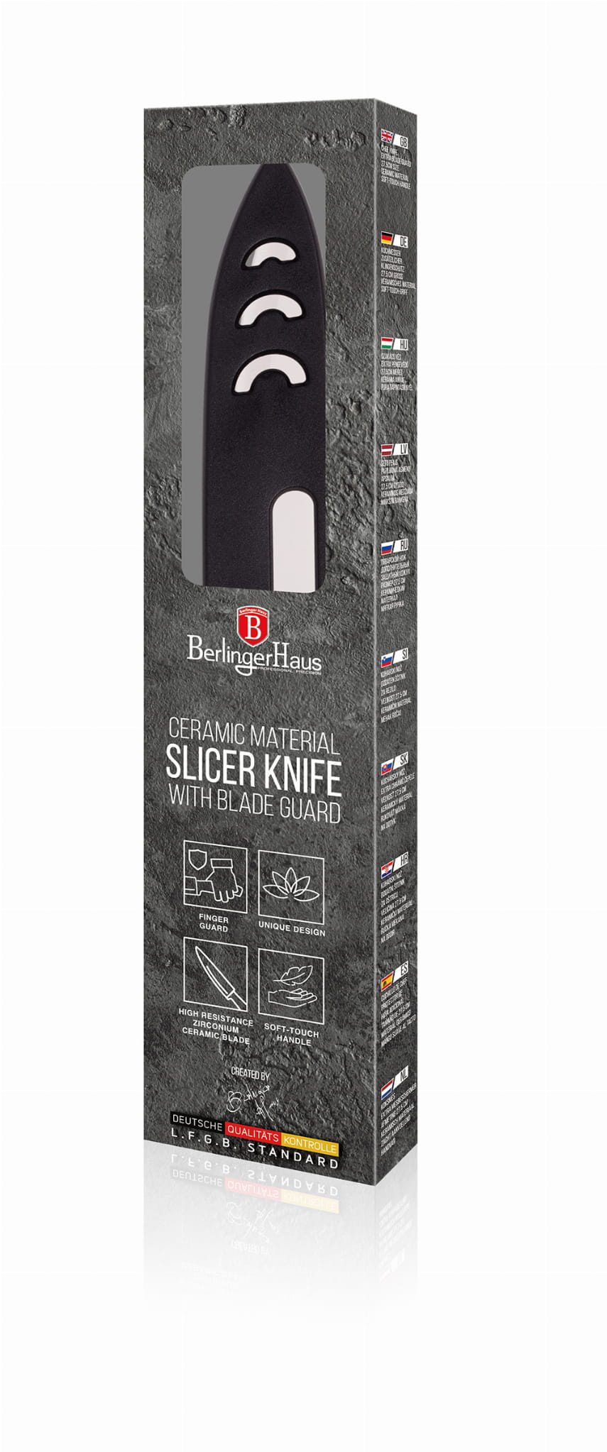 Ceramic universal knife with a length of 24.5cm by BERLINGER HAUS. Designed for cutting, chopping, shredding or portioning meat and fish.It will be great for everyday use at home with a variety of culinary tasks. Ergonomic handle covered with a very durable thin layer of silicone for a secure hold in all conditions.