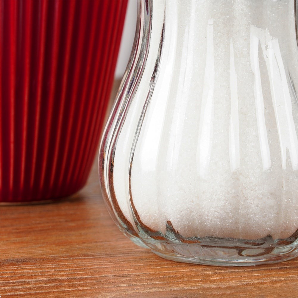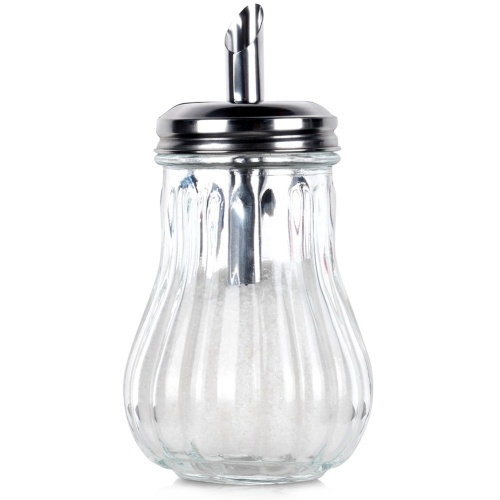 - Practical- sugar bowl with sugar administration dispenser. Condenser with a diameter of 7 cm, a height of 13.5 cm and a capacity of 190 ml. Thanks to it, we will always stick the same amount of sugar.