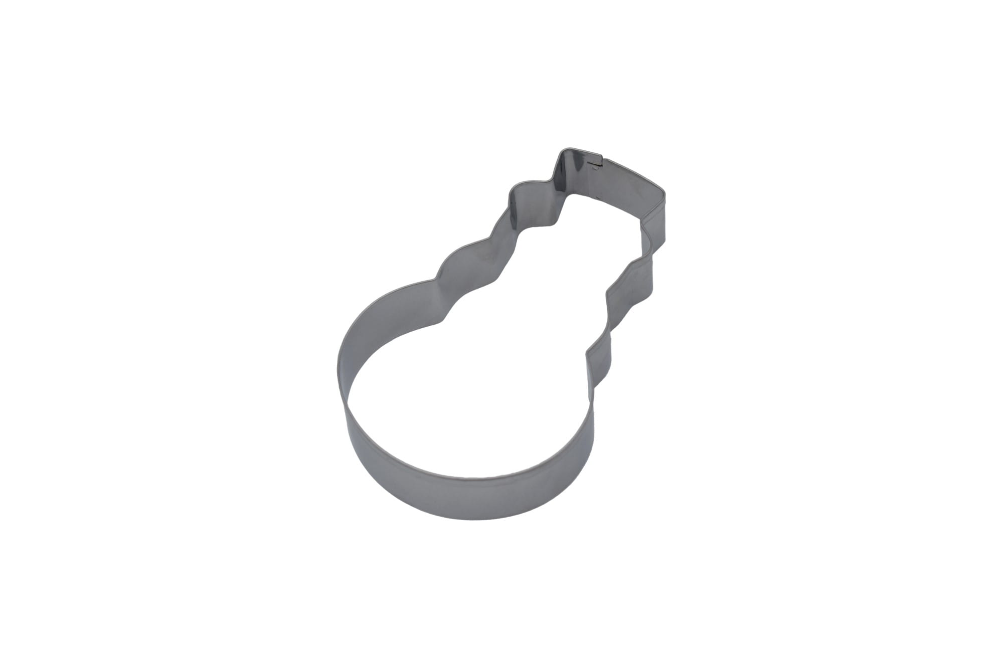 Metal cookie and gingerbread cutter in the shape of a snowman.