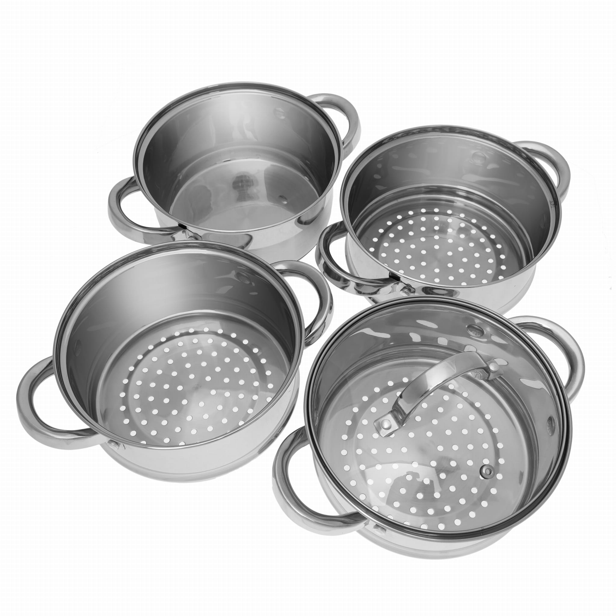 5 częściowy komplet garnków do gotowania na parze KLAUSBERG bazujący na garnku 2.5L / Ø18cm. Zestaw wykonany z wysokiej jakości stali nierdzewnej. Wykorzystana stal składa się z najlepszej jakości stopu powszechnie stosowanego w światowej klasy produktach, co gwarantuje jej wysoką odporność na korozję oraz bardzo dobrą wytrzymałość. Zastosowany materiał umożliwia szybkie podgrzanie potraw i przez dłuższy czas utrzymuje ciepło.