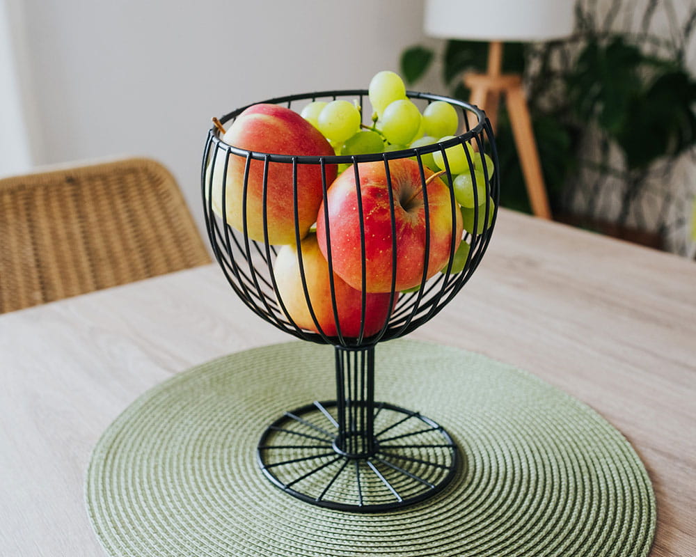 A cup-shaped fruit basket from Brunbeste that will perfectly complement the furnishings of any kitchen or dining room. Its simplicity and black design will blend harmoniously into any interior, regardless of the style of the kitchen or dining room.