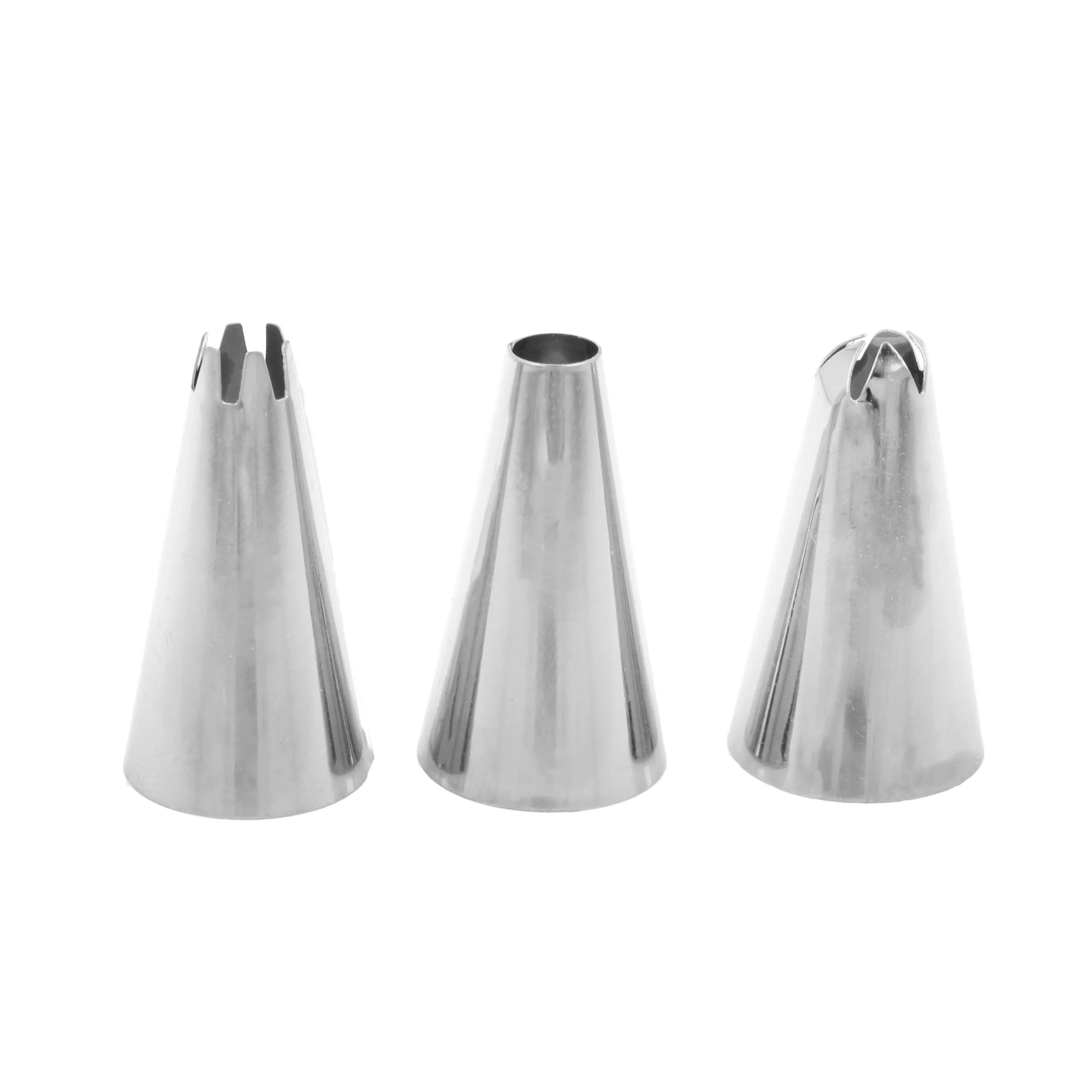 Set includes3 decorative tips with different patterns, which allows you to achieve professional results without the need to use complicated equipment. The smooth steel surface makes the nozzles fit perfectly into pastry bags and are easy to clean. Their compact design allowsconvenient storage in a drawer or container.