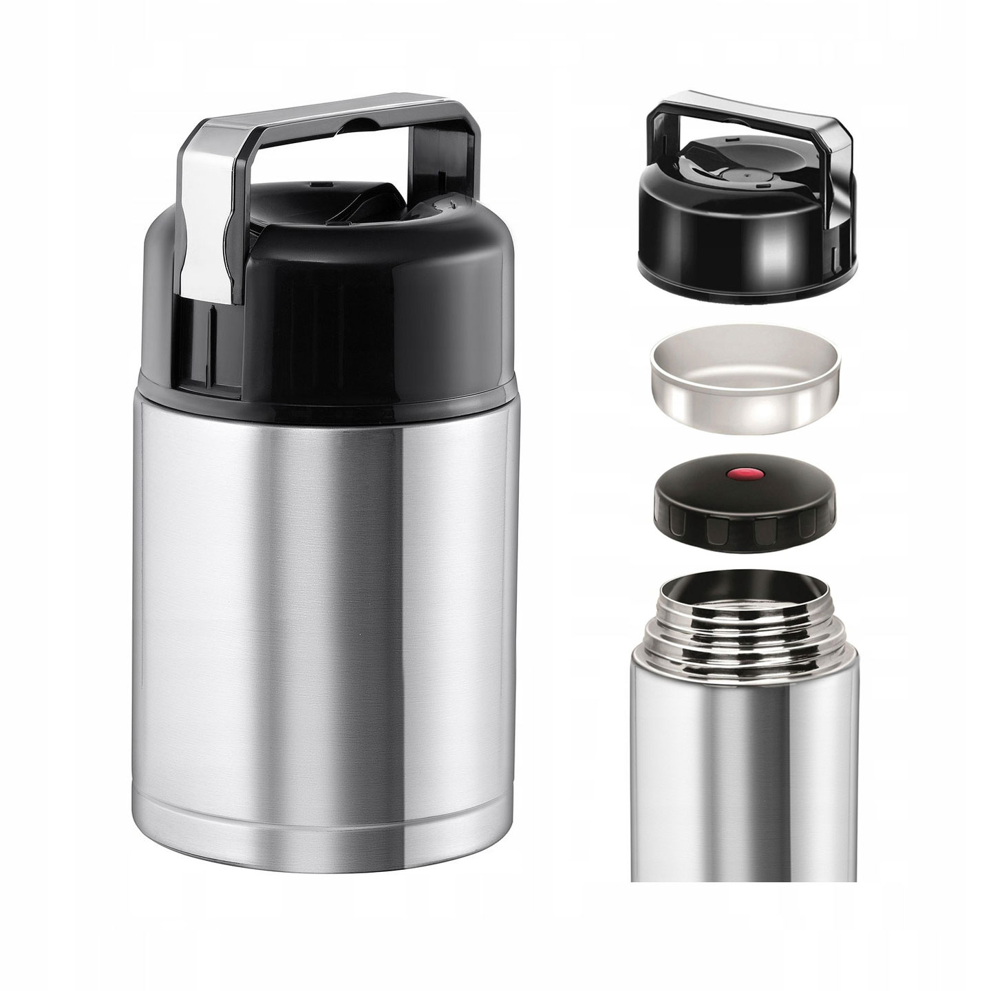 - Dinner thermos made of high-quality stainless steel and plastic suitable for contact with food