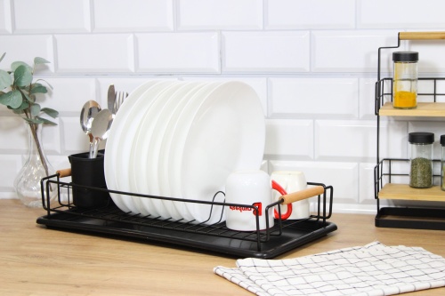 Thanks to its compatible design, it allows you to organise your space conveniently. You can dry plates, cups or lids on it, saving space in your kitchen. The drying rack fits into both traditional and modern room design.