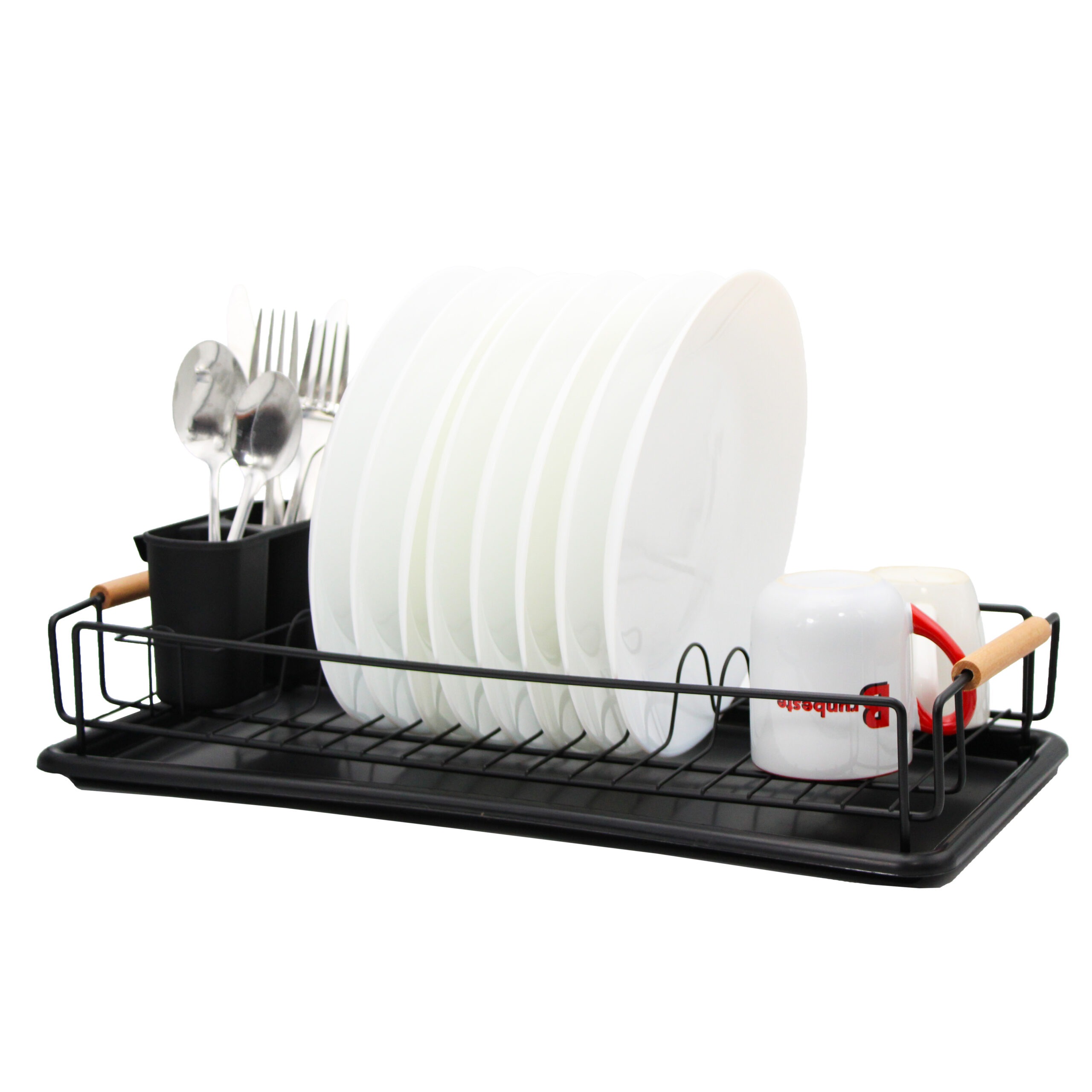 The Brunbeste dish dryer is designed for everyday convenience in the kitchen. Thanks to its metal frame , it is extremely resistant to rust and scratches. The tray under the frame protects the countertop from getting wet. A cutlery drainer is included with the dryer. The bamboo handles make it easy to carry.