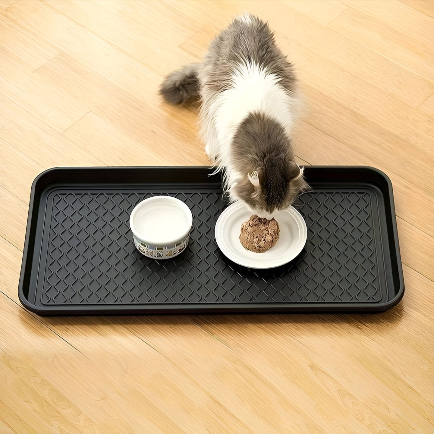 - High rim: Prevents spills and protects floors from getting wet.