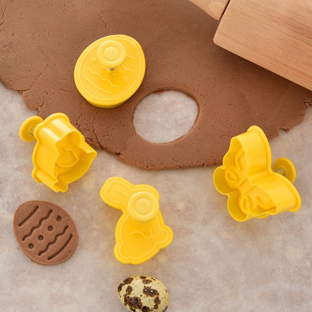 - PRACTICAL- A set of four confectionery cutters with a piston in the shape of an egg, a bunny, a chick and a butterfly. Perfect for preparing cookies and gingerbread.