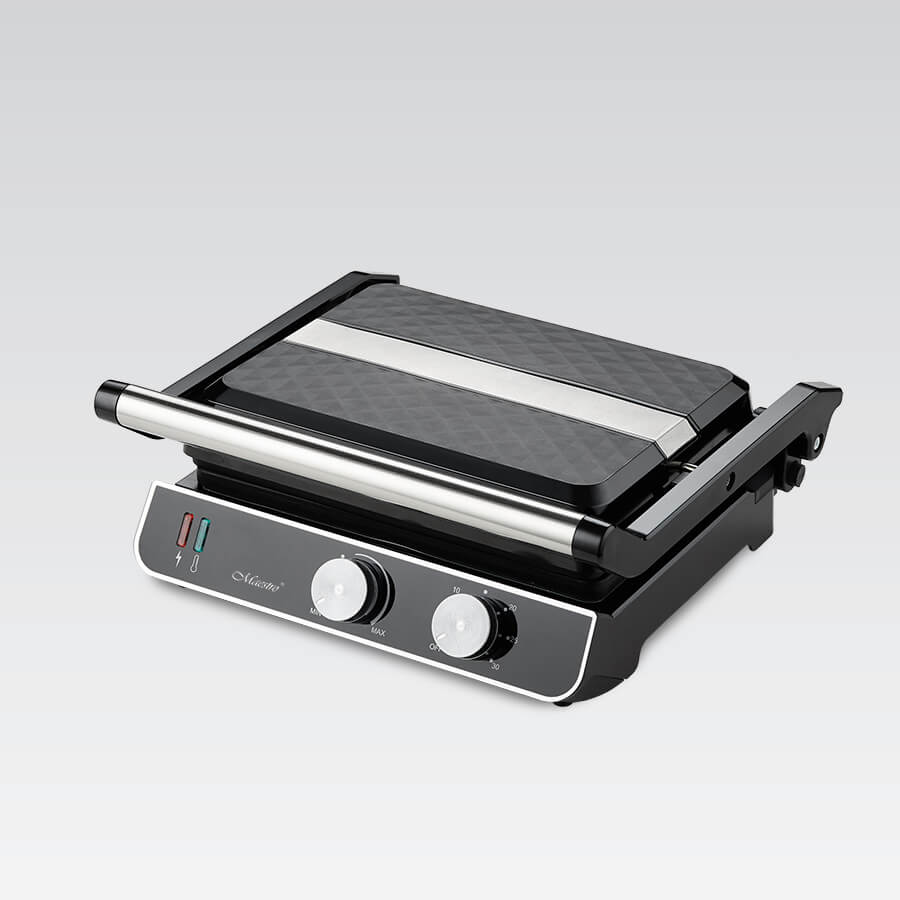 Grill Maestro MR-722 nagrzewa się w 3–5 minut, dzięki czemu niemal od razu możesz rozpocząć grillowanie. Wysoka moc gwarantuje równomierne rozprowadzanie ciepła i perfekcyjne rezultaty – od soczystych mięs po chrupiące warzywa i aromatyczne kanapki panini.