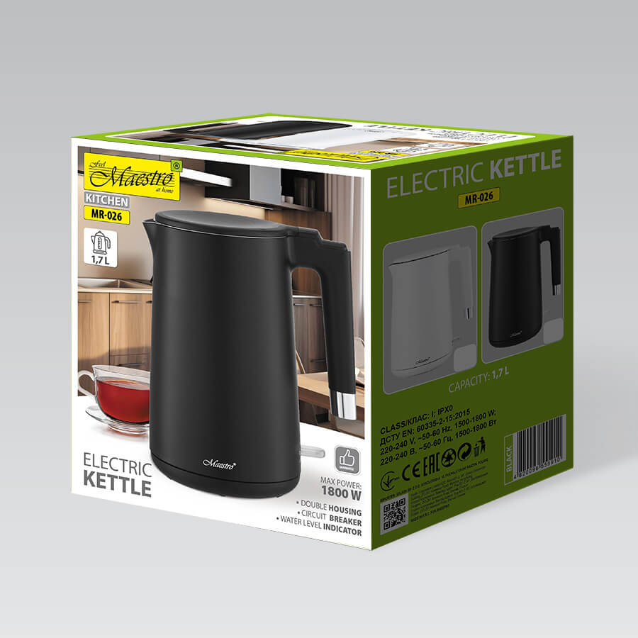 Electric kettle 1.7L 1800W black MAESTRO MR-026-BLACK