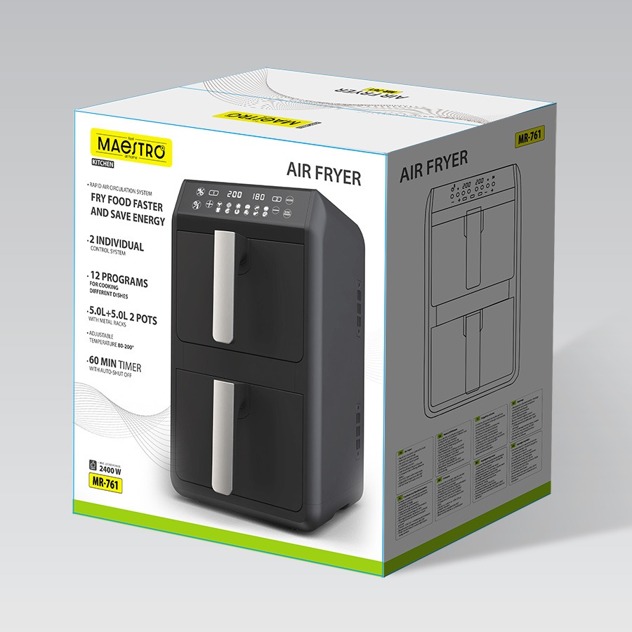 Maestro MR-761 Vertical Air Fryer | 2400 W, 2 × 5 L - healthy cooking with a modern twist