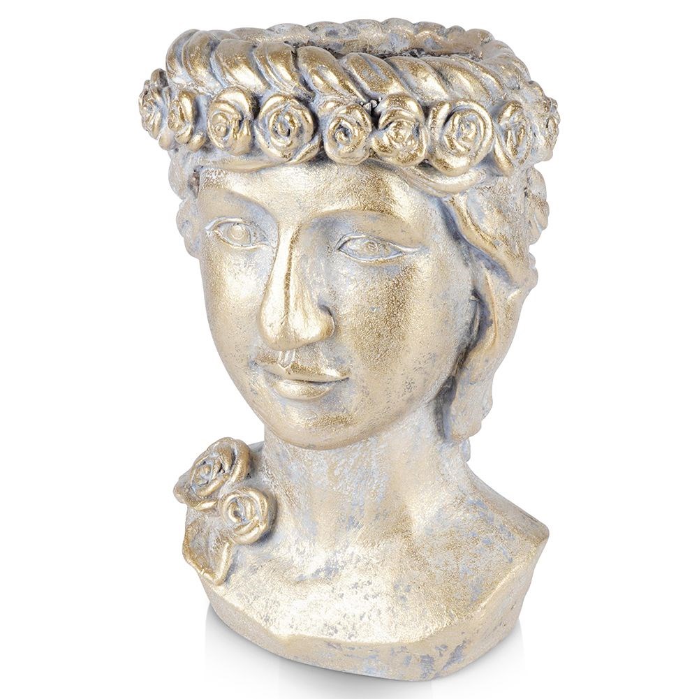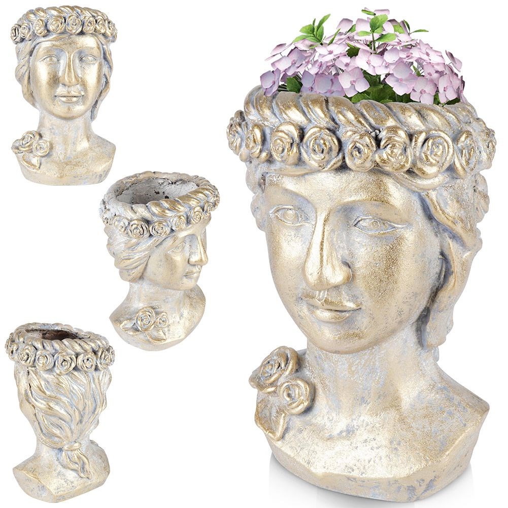 - PRACTICAL- Flowerpot cover in the shape of a Greek head. The pot has dimensions of 20 x 21 x 33 cm. Perfect as a cover for pots with plants and flowers. We can plant plants in it directly.